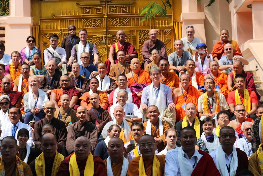 Dr Desmond Biddulph CBE, President The Buddhist Society, and delegates attending the International Buddhist Conclave, Sarnath, October 2016