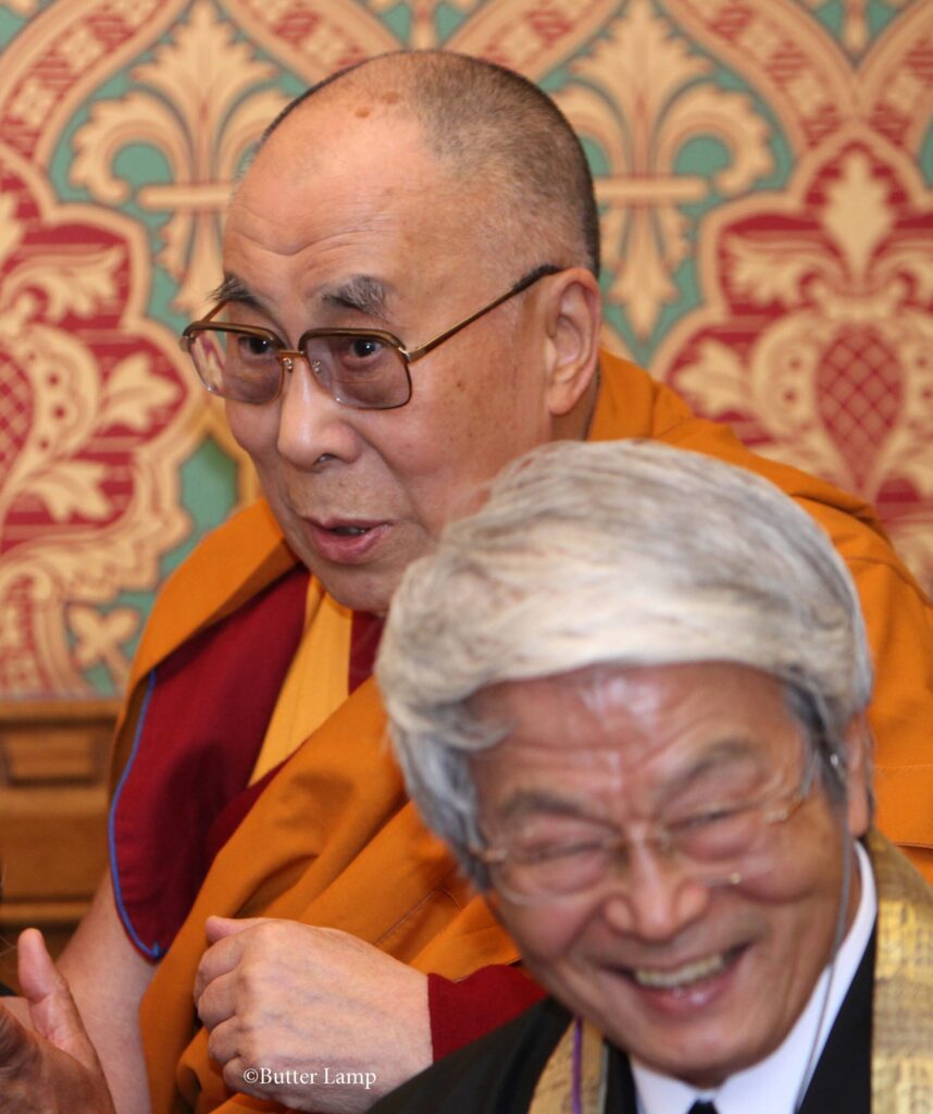 His Holiness The Dalai Lama with Buddhist Society Council Member, Rev. Prof. Kemmyo Taira Sato at the House of Lords.