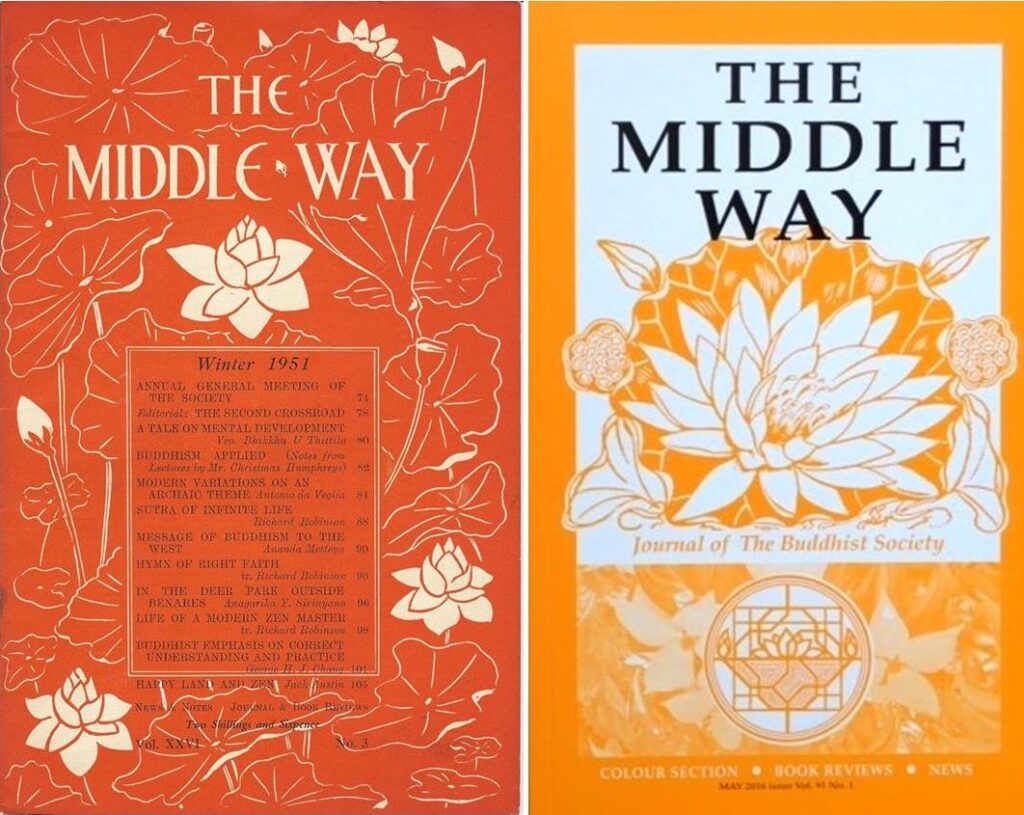 The Middle Way, the journal of The Buddhist Society, has a continuous publishing history dating back to 1925. First appearing under the title, Buddhism in England, it was renamed The Middle Way in 1943. It appears four times a year, in February, May, August, and November.