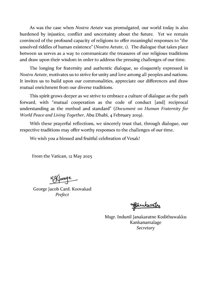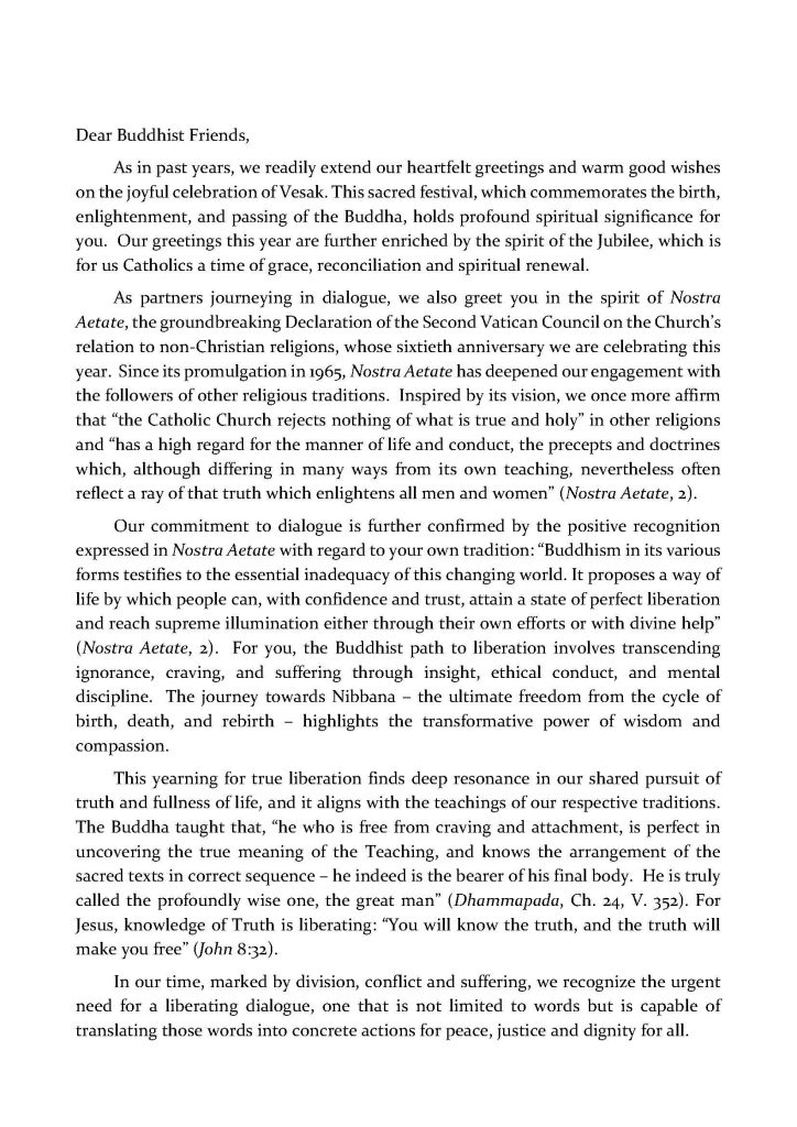 Message for the feast of Vesak